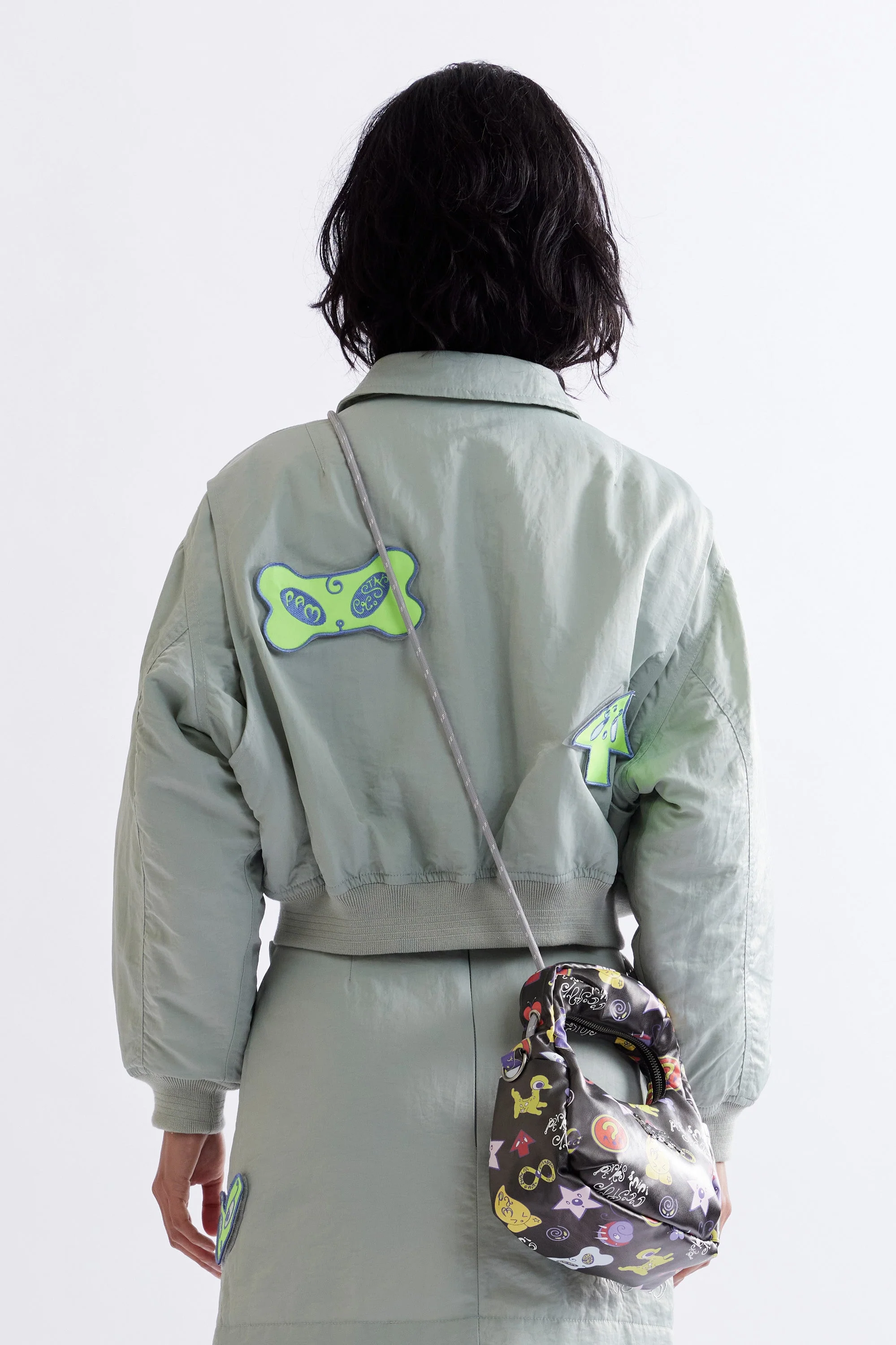 - Reversible cropped flight style jacket.